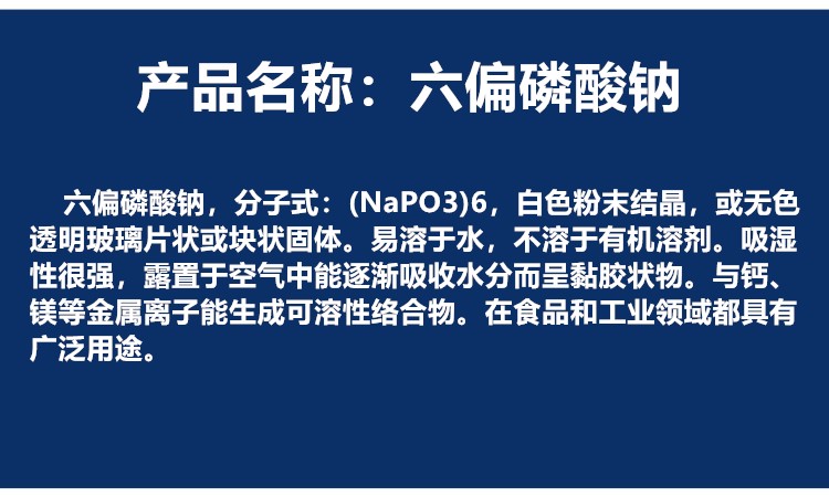 水熔聚,生成的六偏磷酸钠熔体经骤冷制片、粉碎,制得工业六偏磷酸钠成品。
